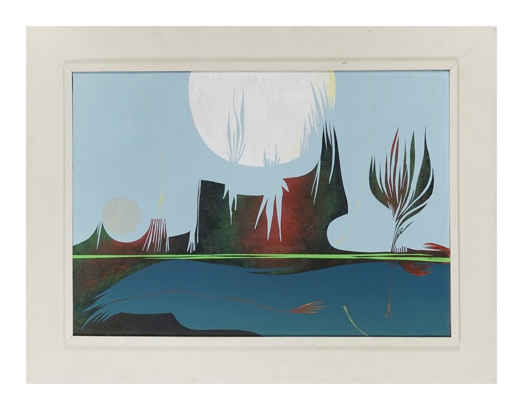Olio su tela. cm 50x70. Firmato e datato in basso a destra. Controfirmato, controdatato e titolato al verso. Al verso presenti due timbri di gallerie: Galleria d'Arte Cortina e Stellaria Galleria.