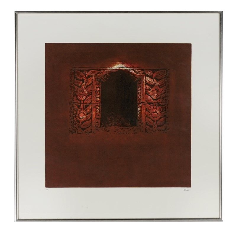 Acquatinta su carta Arches. mm 495x490. Foglio: mm 695x700. Firmata a matita in basso a destra, numerata in basso a sinistra e timbro a secco dello stampatore nell'angolo inferiore sinistro. Es. 9/50. Provenienza: Multimedia Arte Contemporane, Brescia, la cui etichetta è applicata al supporto del verso.