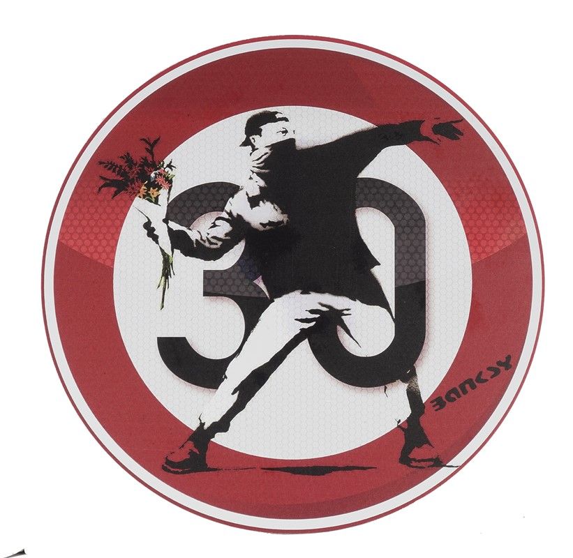 Offset su cartello. Diam. cm 39. Firma in lastra in basso a destra. Opera accompagnata dal certificato di Rare&Signed con il codice: R&SD3036173026271111.