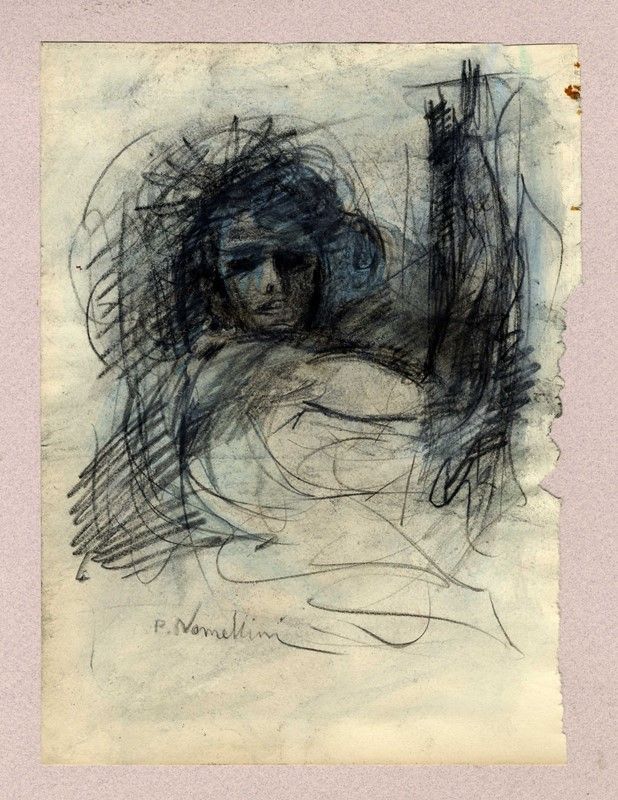 Acquerello e carboncino su carta. mm 345x270. Firmato in basso a sinistra. Al verso: ulteriore studio di figura maschile, anch'esso firmato in basso a destra.