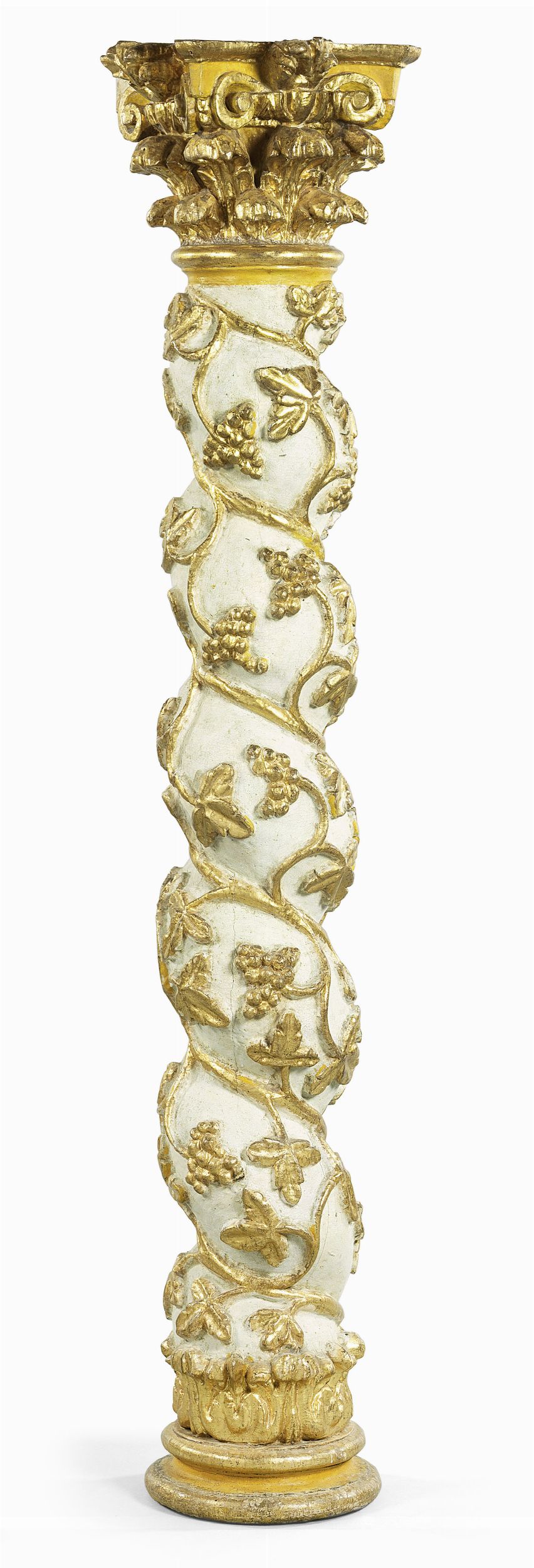 Colonna a tortiglione in legno intagliato e dorato
