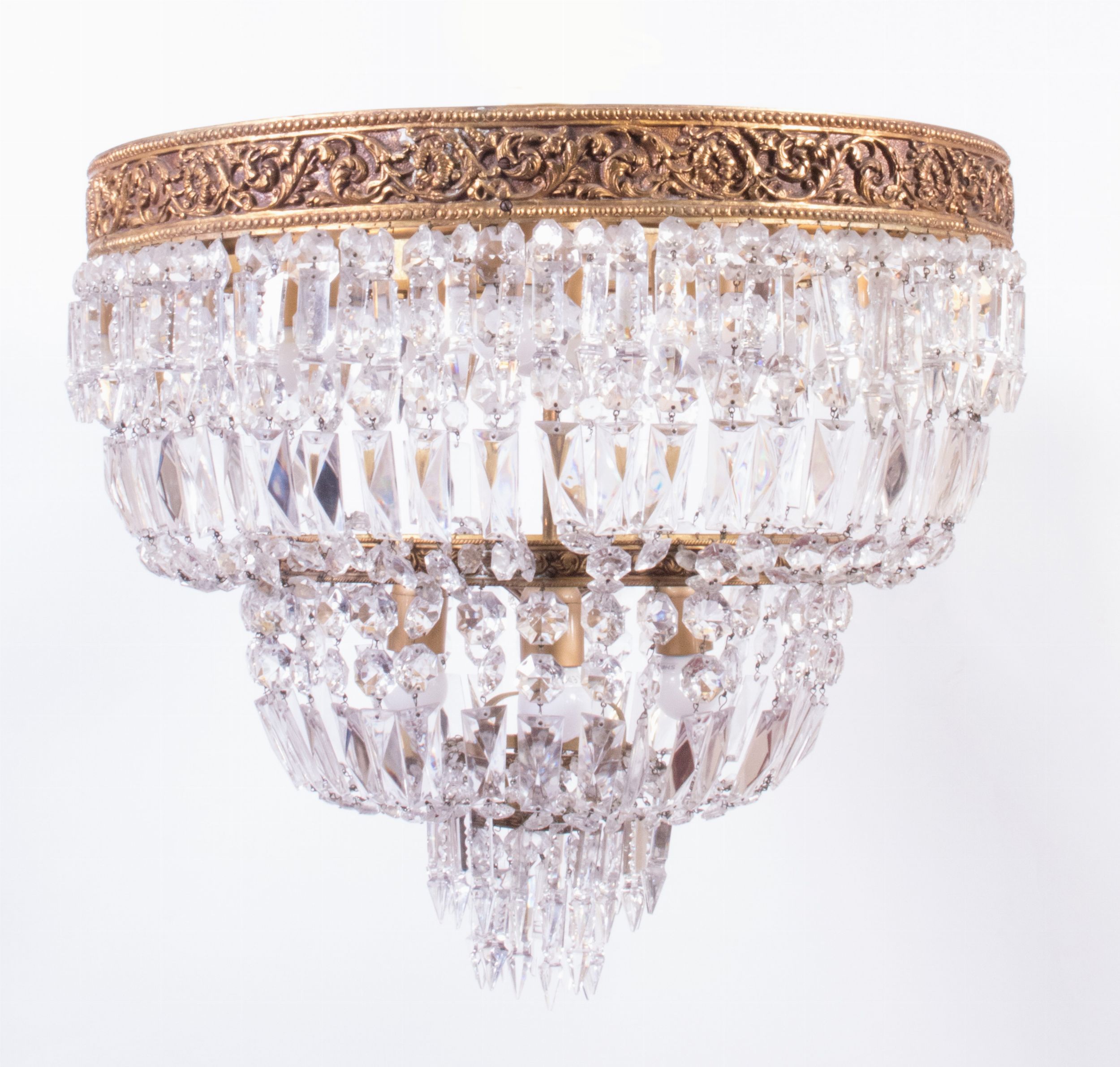 Lampadario a cascata in metallo dorato