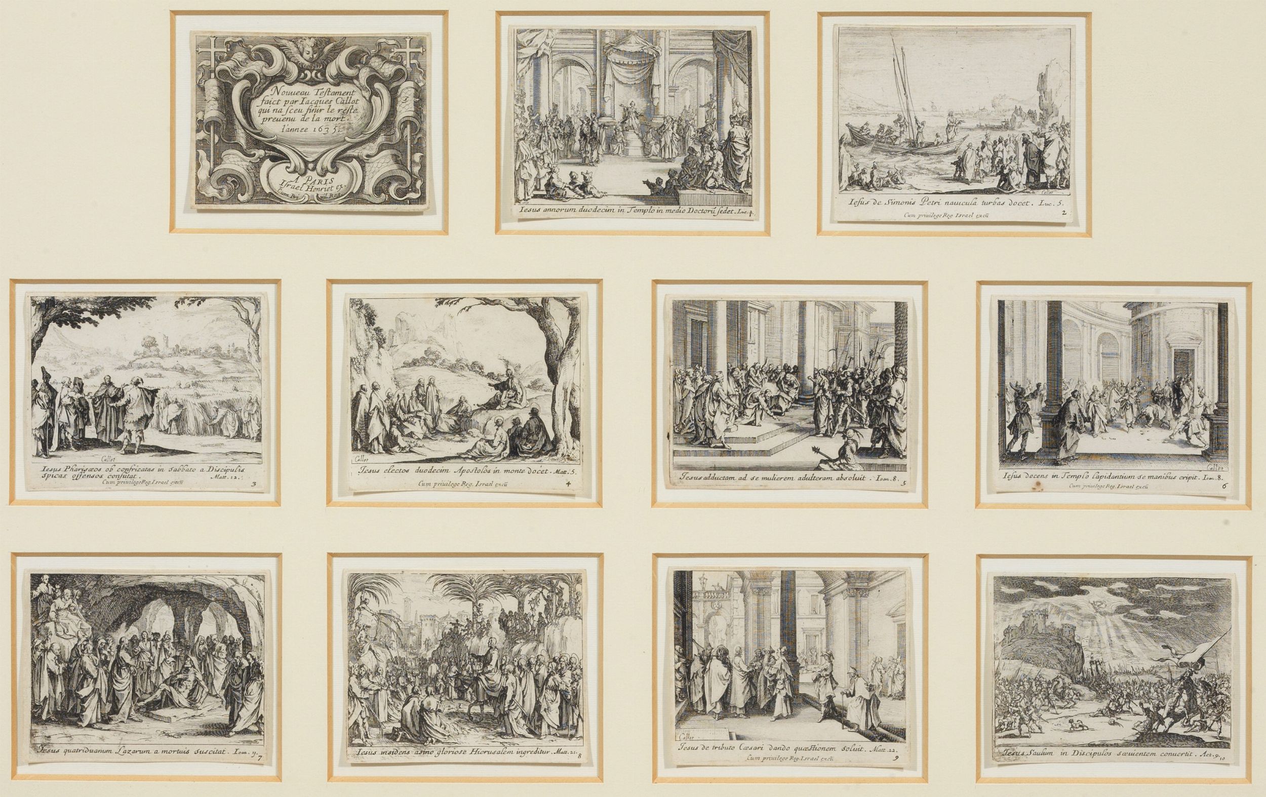 Serie completa di 10 acqueforti più un frontespizio, cm. 7x8,5 ca. ognuna