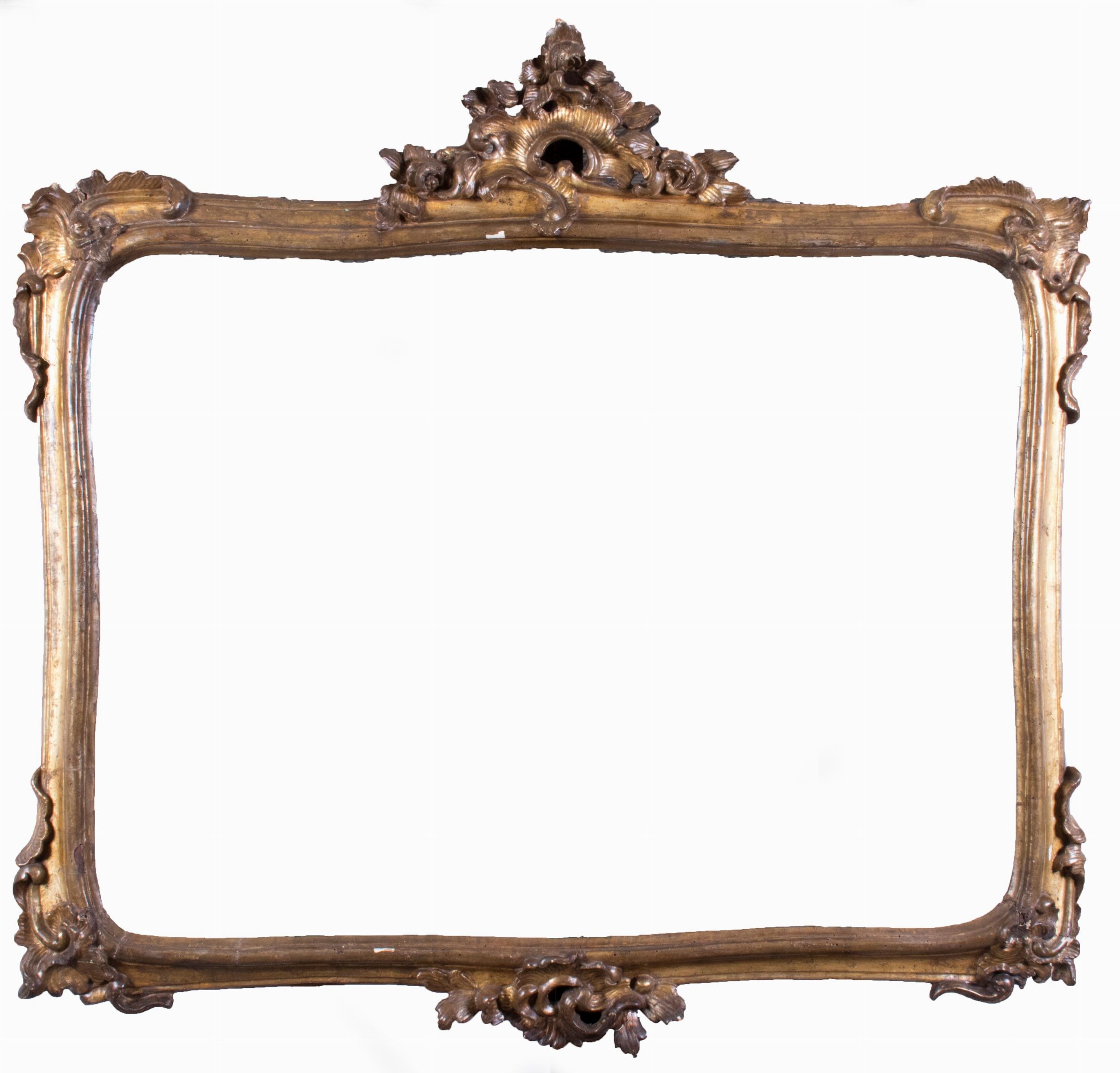 Specchiera sagomata in legno intagliato e dorato a mecca