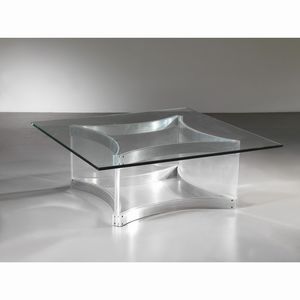 Alessandro Albrizzi (XX sec.) TAVOLO BASSO struttura in acciaio e plexiglass, ripiano in vetro Produzione Italia, [..]