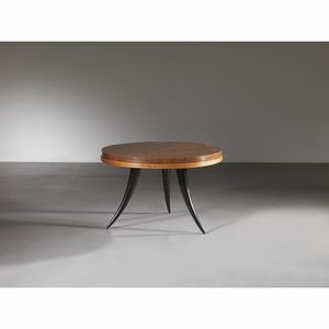 TAVOLO BASSO ROTONDO in legno con intarsio a stella in ottone Produzione Italia, 1950 circa alt. cm 44 e diam. [..]