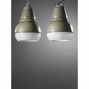 Oscar Torlasco (Roma, 1934-2004) DUE LAMPADE A SOSPENSIONE MODELLO GENOVA 4053 struttura in metallo laccato e [..]