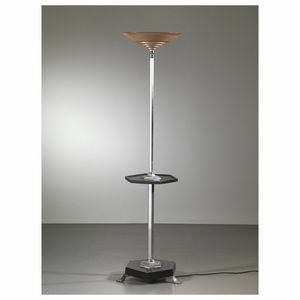 LAMPADA DA TERRA in metallo con paralume in vetro nei toni del rosa Produzione Francia, 1920 circa alt. cm 170 [..]