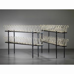 QUATTRO GRANDI FIORIERE IMPILABILI in metallo verniciato nei toni del bianco e del nero Produzione Italia, 1955 [..]