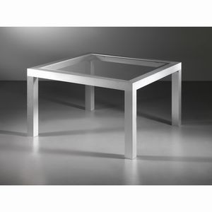 Nanda Vigo (Milano, 1926 - 2020) TAVOLO MODELLO ESSENTIAL struttura in alluminio, ripiano in cristallo specchiato [..]