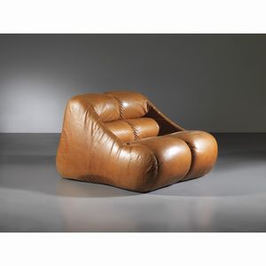 De Pas, D’Urbino, Lomazzi POLTRONA MODELLO CIUINGAM imbottita e rivestita in cuoio nei toni del marrone [..]