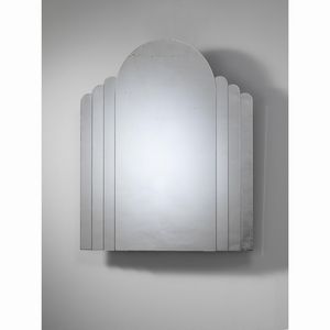 SPECCHIO CON MENSOLA in legno Produzione Italia, 1960 circa mensola cm H25xL115xP30 specchio cm H80xL115xP3 [..]