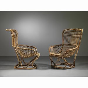 Tito Agnoli (Lima, 1931 - Milano, 2012) DUE POLTRONE in giunco Produzione Bonacina, Italia, 1960 circa cm 102x70x80 [..]