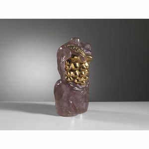 Salvador Dalì (Figueres, 1904 - 1989) SCULTURA MATERNITA’ in vetro nei toni del viola con dettagli [..]