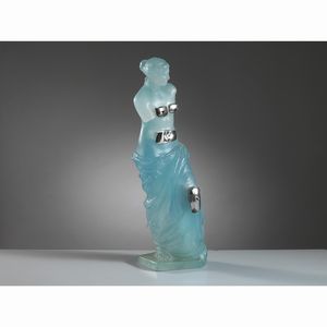 Salvador Dalì (Figueres, 1904 - 1989) SCULTURA VENUS in vetro nei toni dell’azzurro con dettagli [..]