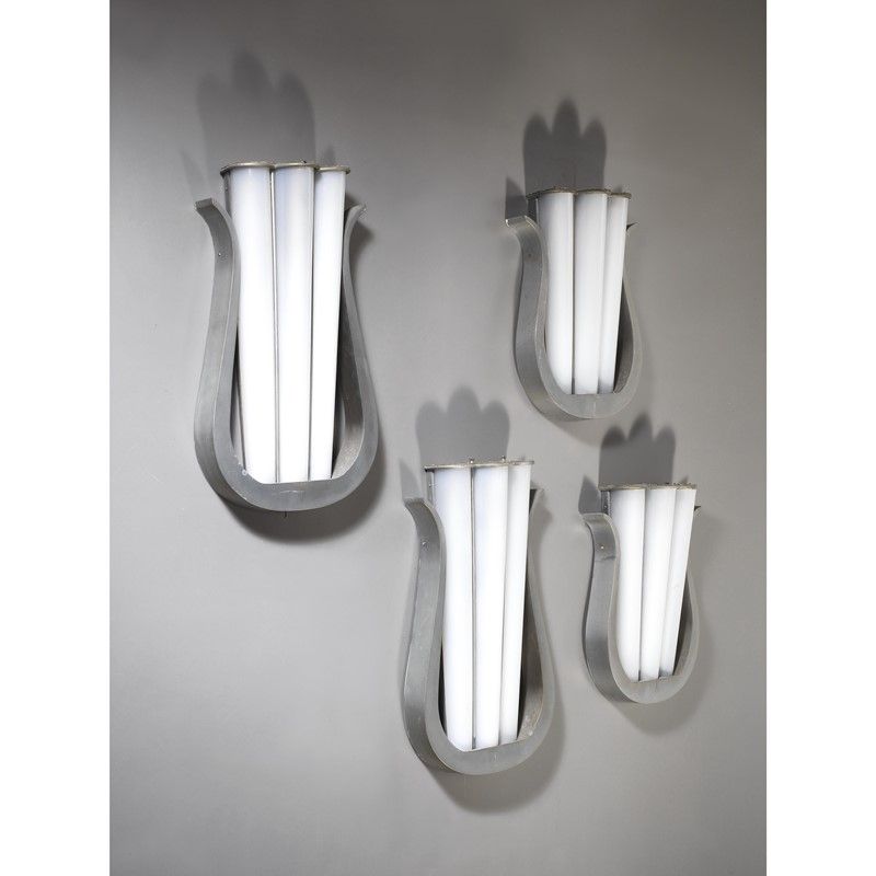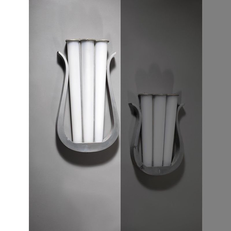 TWO APPLIQUES, METAL AND GLASS STRUCTURE