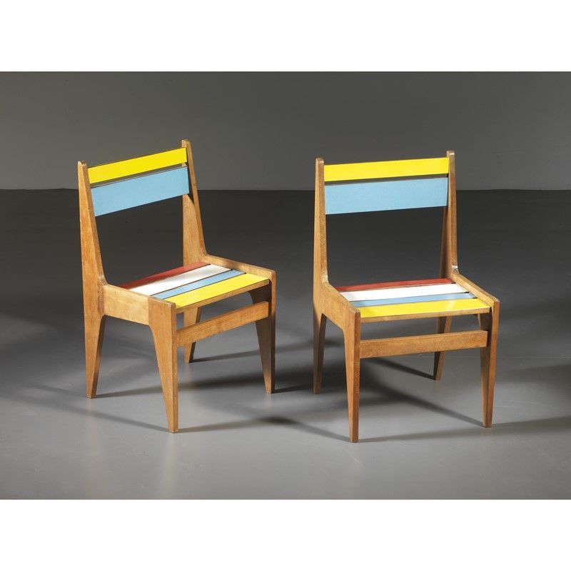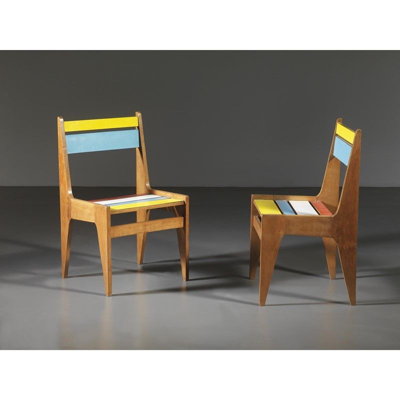 TWO CHAIRS, COLORED LAMINATED WOOD