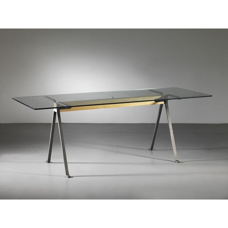 «FRATE» TABLE, WOODEN STRUCTURE, GLASS TOP