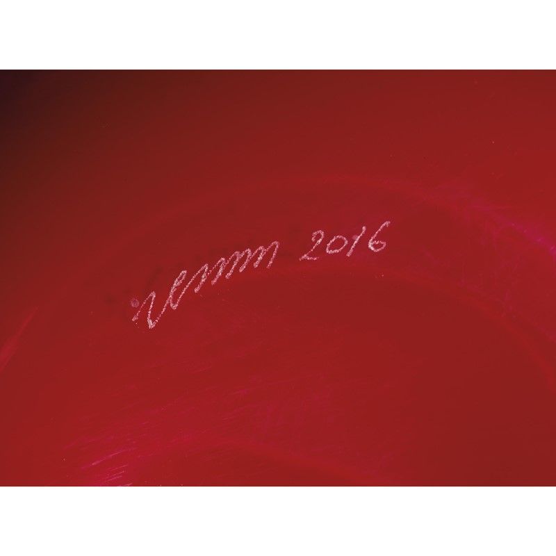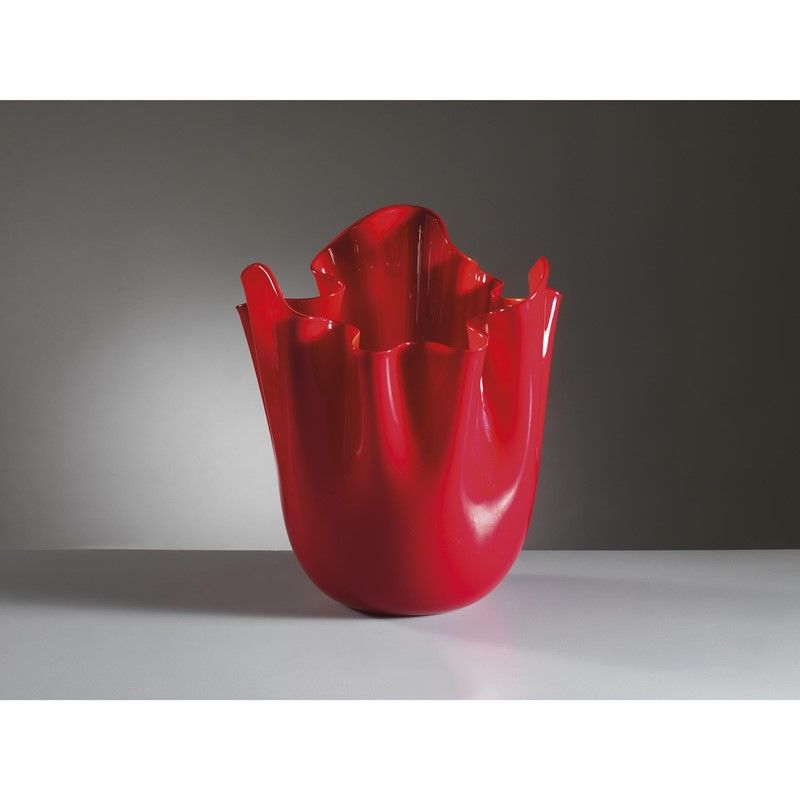 Fulvio Bianconi e (Padova, 1915 - Milano, 1996) Paolo Venini (Milano, 1895 - Venezia 1959) VASO MODELLO FAZZOLETTO in vetro nei toni del rosso Marchiato e datato a punta sulla base Il vaso è accompagnato dalla scatola originale Produzione Venini, Italia, 2016 cm alt. 30