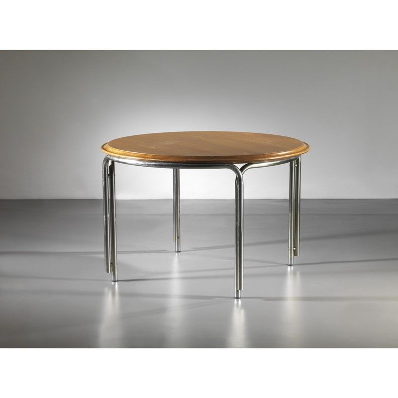 «786» ROUND TABLE, METALLIC TUBULAR STRUCTURE, WOODEN TOP
