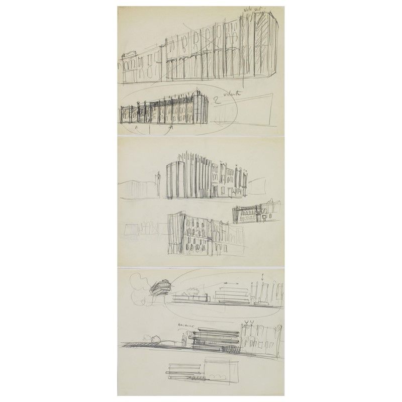 PENCIL AND PEN ON PAPER, PROJCTS OF THE FACADES OF THE CASSA DI RISPARMIO DI PADOVA E ROVIGO
