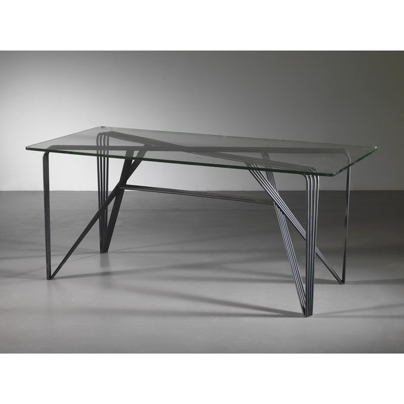 TABLE, IRON STRUCTURE, GLASS TOP