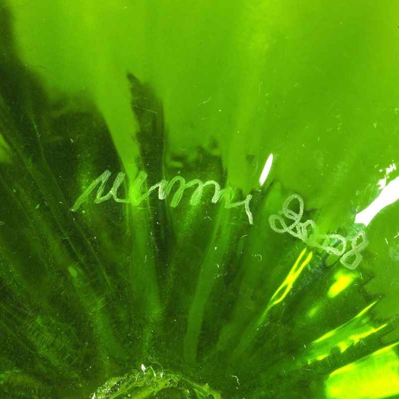 in vetro nei toni del verde e bordo superiore nei toni del rosso