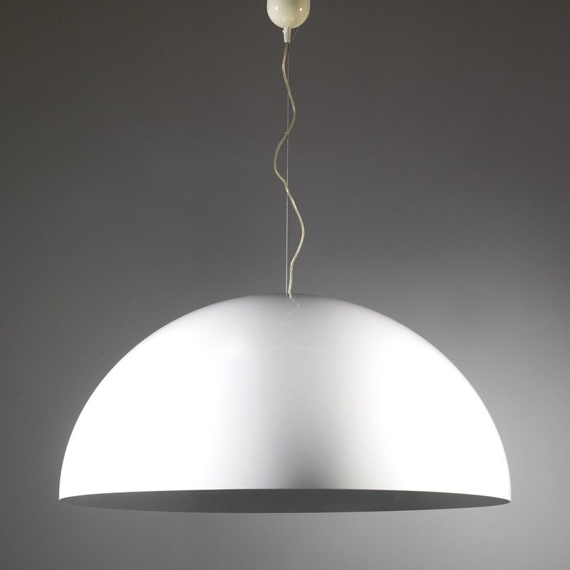 Vico Magistretti (Milano, 1920 - Milano, 2006) LAMPADA A SOSPENSIONE MODELLO SONORA in metallo laccato nei toni del bianco Produzione Oluce, Italia, 1976 circa alt. cm 40 e diam. 100