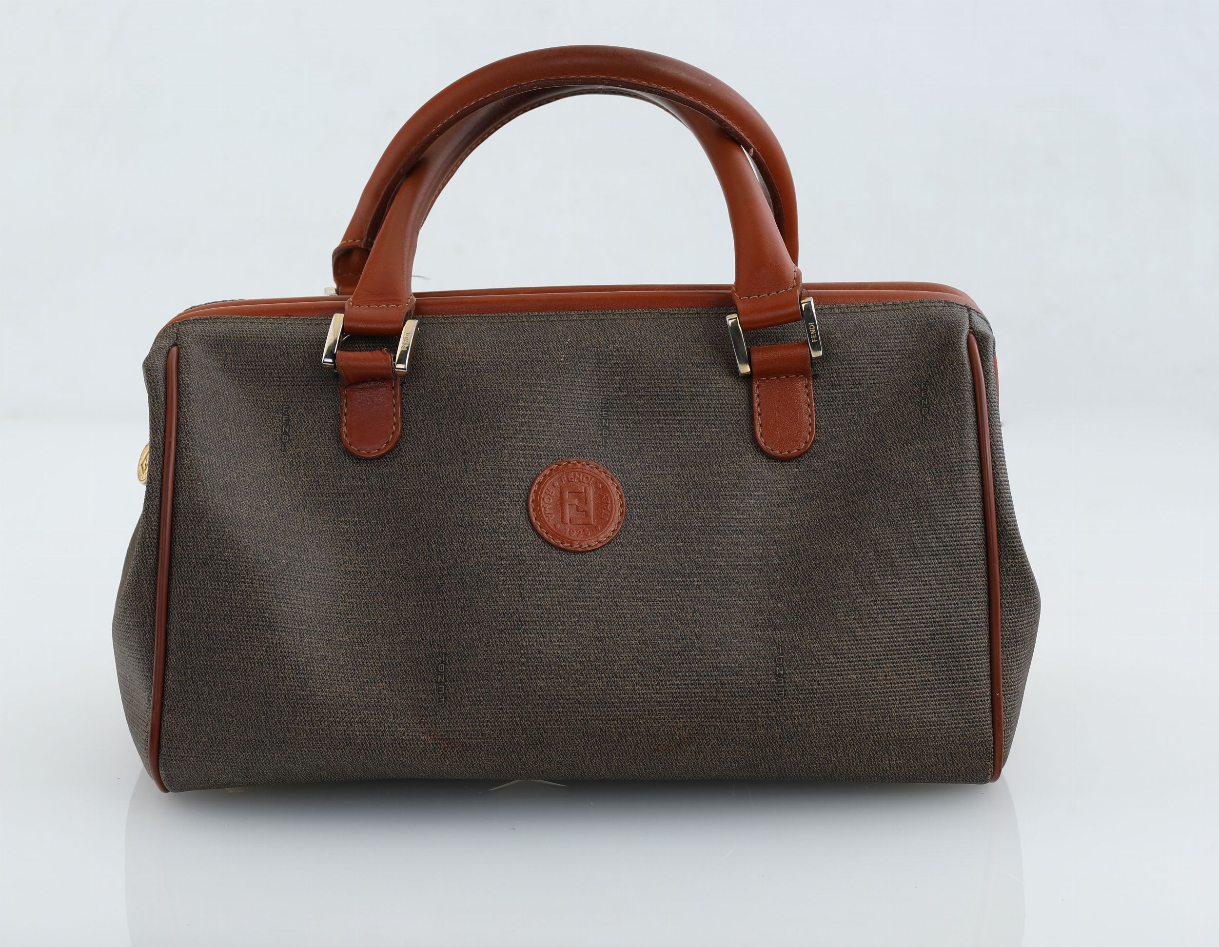 Finiture in pelle. Manici (31 cm). Anelli per eventuale tracolla. Chiusura con zip color oro con logo. All'interno tasca con chiusura lampo e traghetta metallica con logo. Sul fondo piedini metallici. Presenta segni di utilizzo.