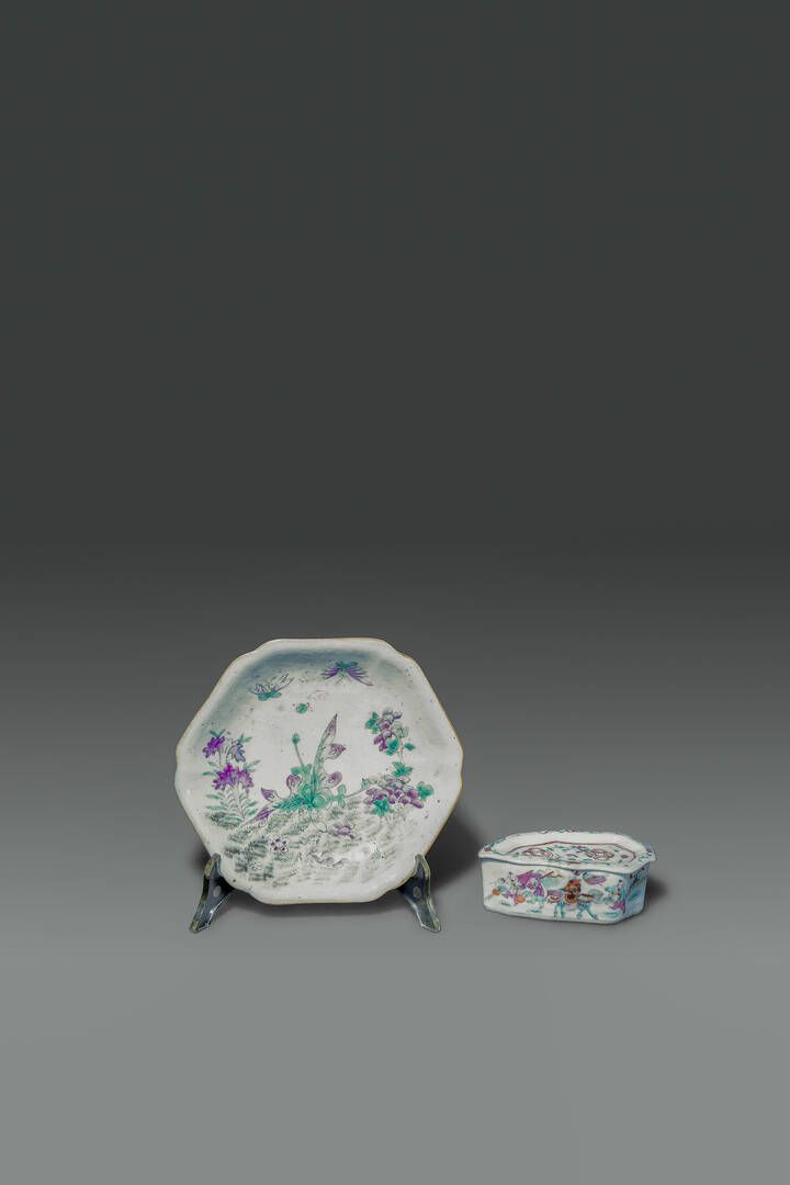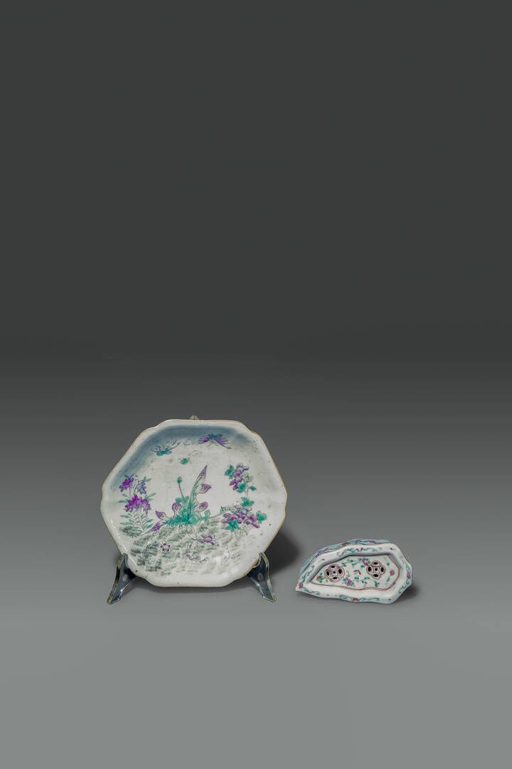 Alzata e incensiere in porcellana Famiglia Rosa Cina dinastia Qing XIX Sec. H [..]