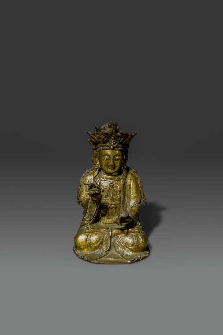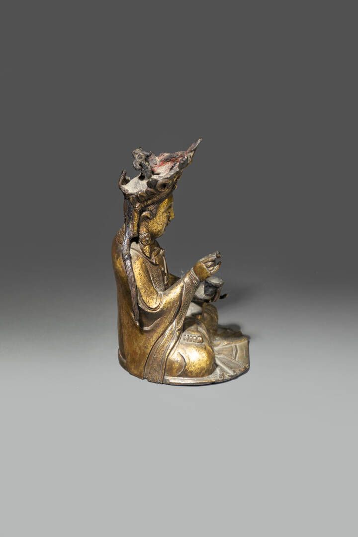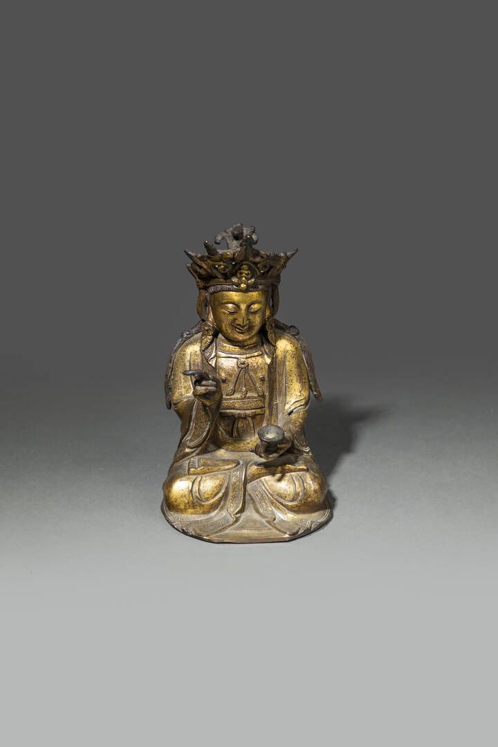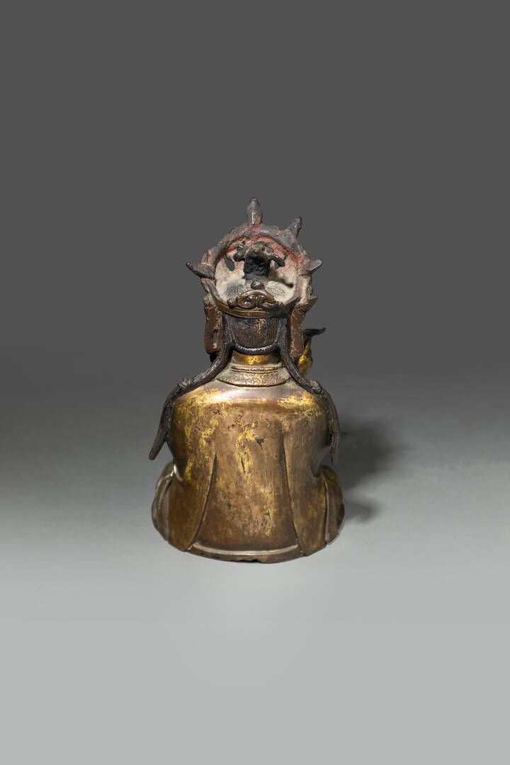 Buddha in bronzo dorato seduto nella posizione del loto Cina dinastia Ming XVII sec H cm 22x13