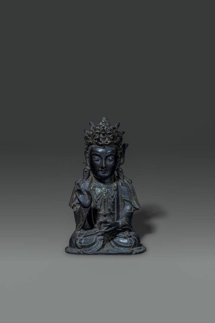 Buddha in bronzo seduto nella posizione del loto Cina dinastia Ming XVI sec cm 21x13