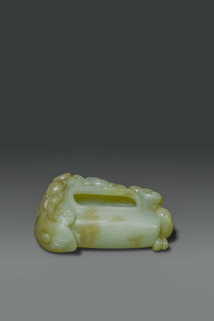 Calamaio in giada celadon scolpito con figure e fiori di loto Cina dinastia Qing [..]