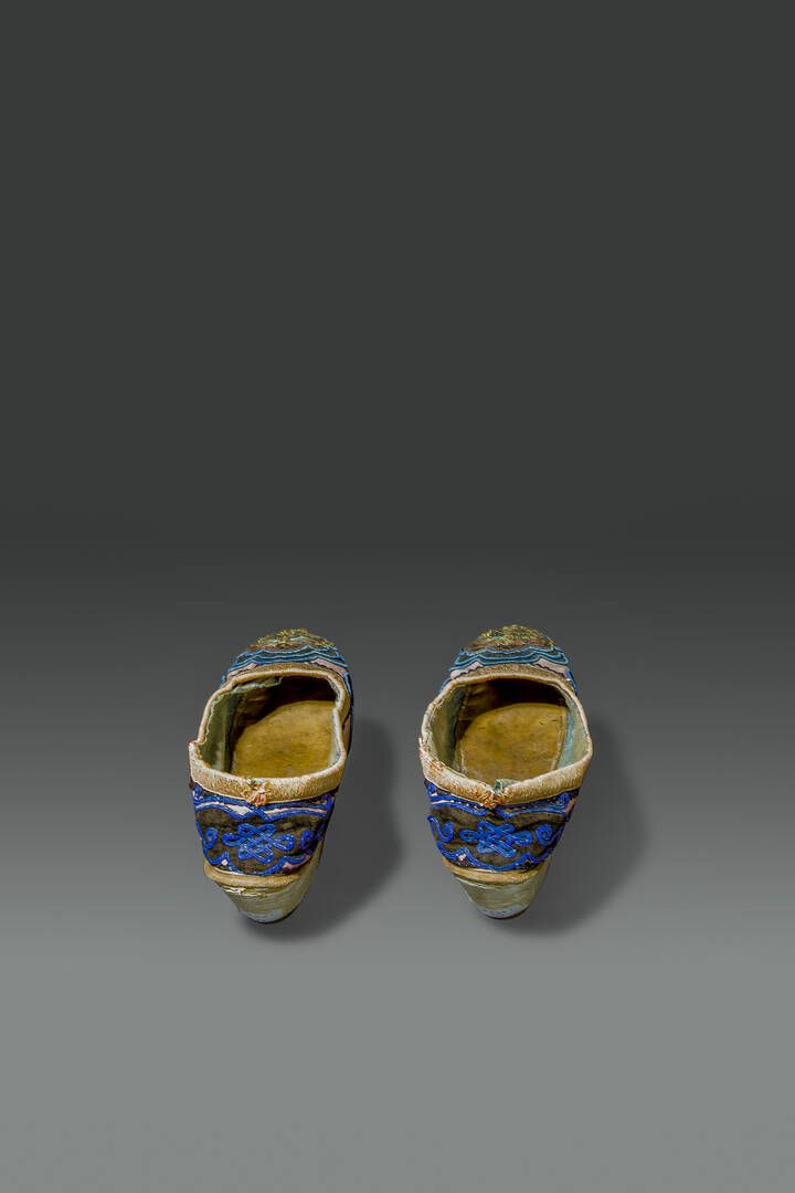 Calzature tradizionali femminili in tessuto ricamato Cina dinastia Qing XIX sec [..]