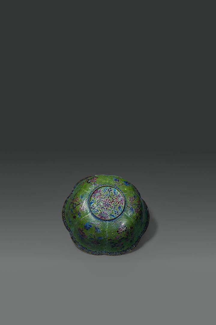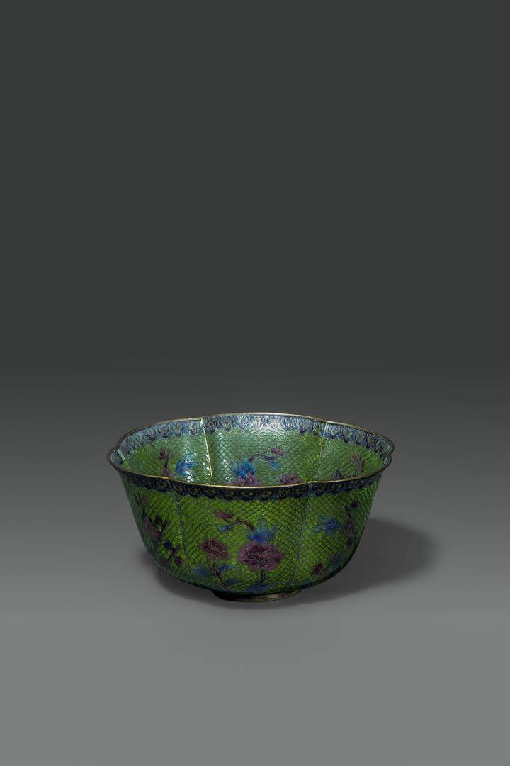 Ciotola in vetro con anima in rame con decori floreali Cina dinastia Qing XIX [..]