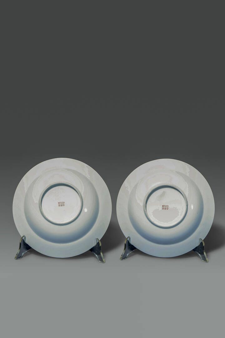 Coppia di piatti in porcellana Famiglia Rosa dipinti con draghi e fenici Cina [..]