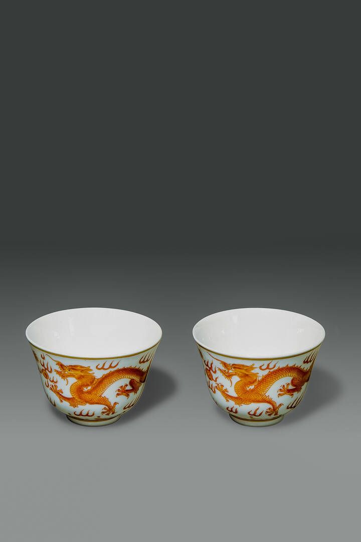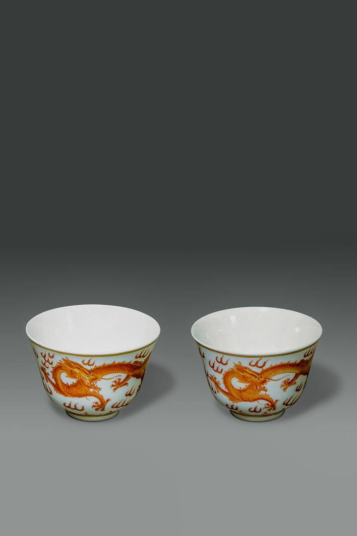 Coppia di tazzine in porcellana con decori di draghi Cina Repubblica XX sec H [..]