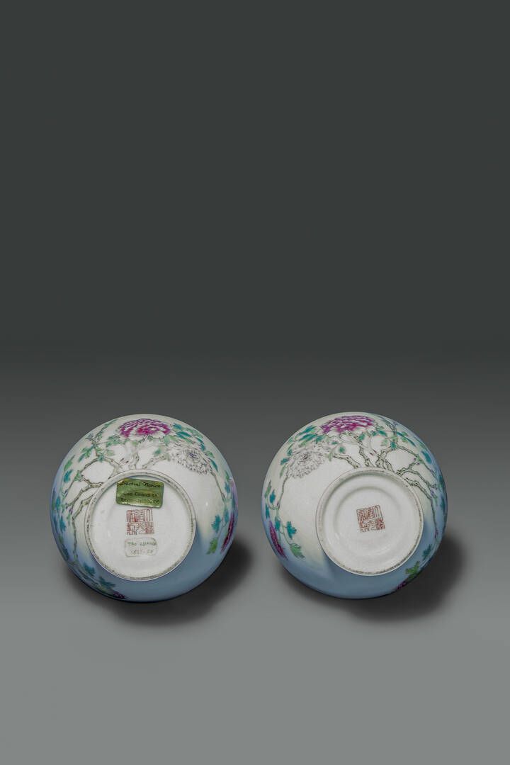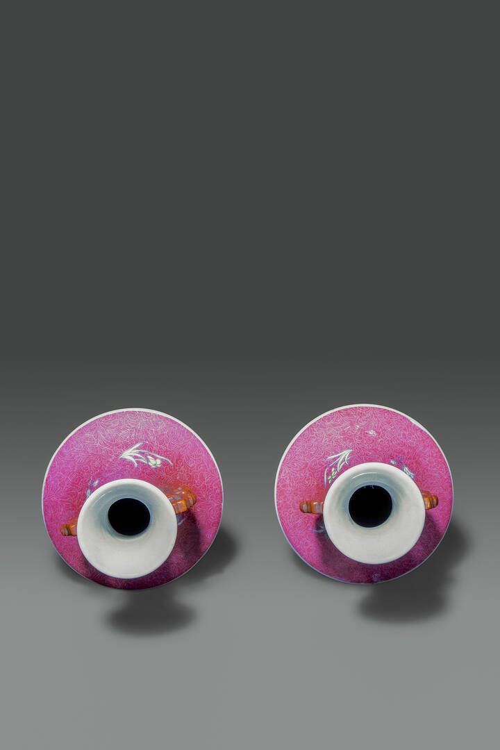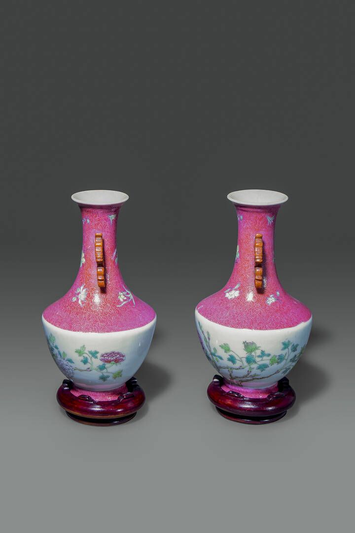 Coppia di vasi Famiglia Rosa con decori floreali su fondo rosa Cina Repubblica [..]