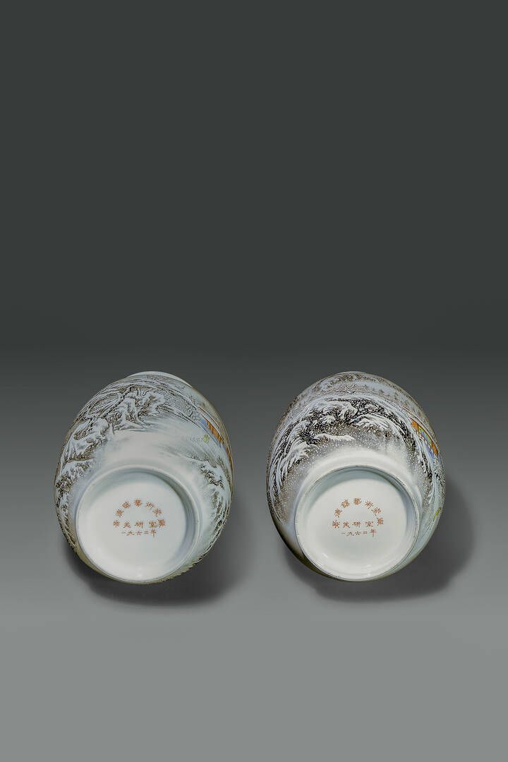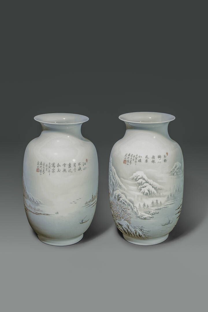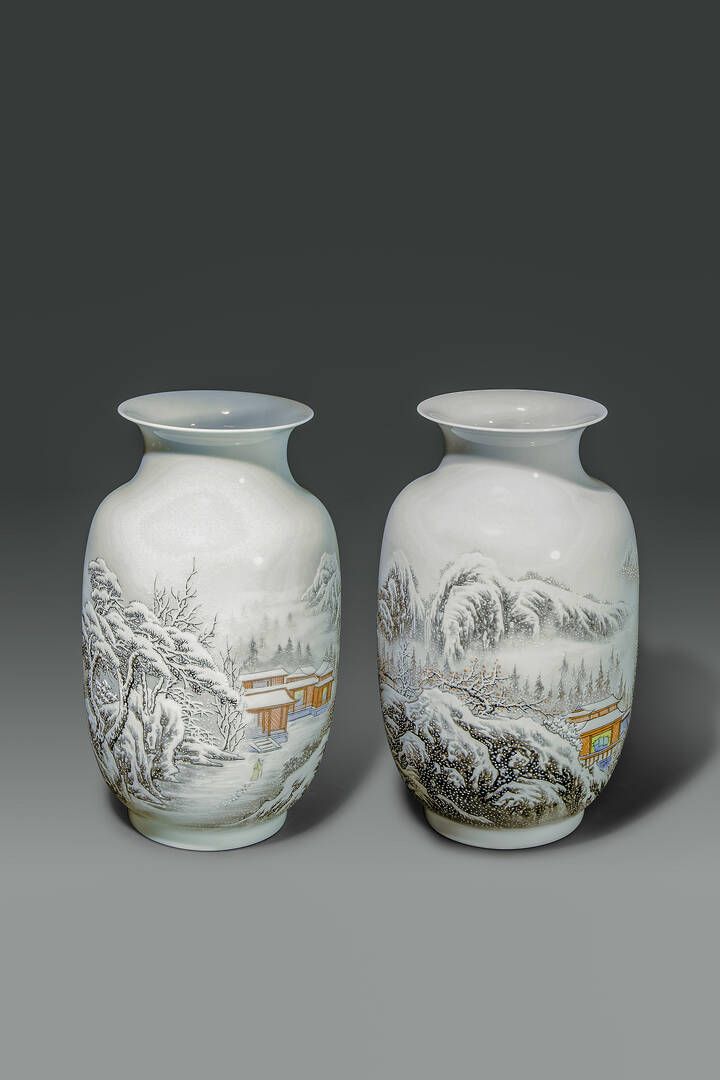 Coppia di vasi in porcellana con paesaggi invernali e iscrizioni Cina Repubblica [..]