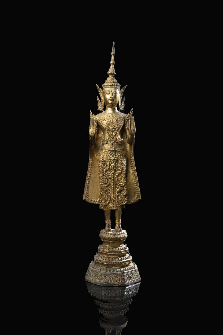 Figura di Buddha in bronzo dorato nella posizione eretta Thailandia XIX secolo. [..]