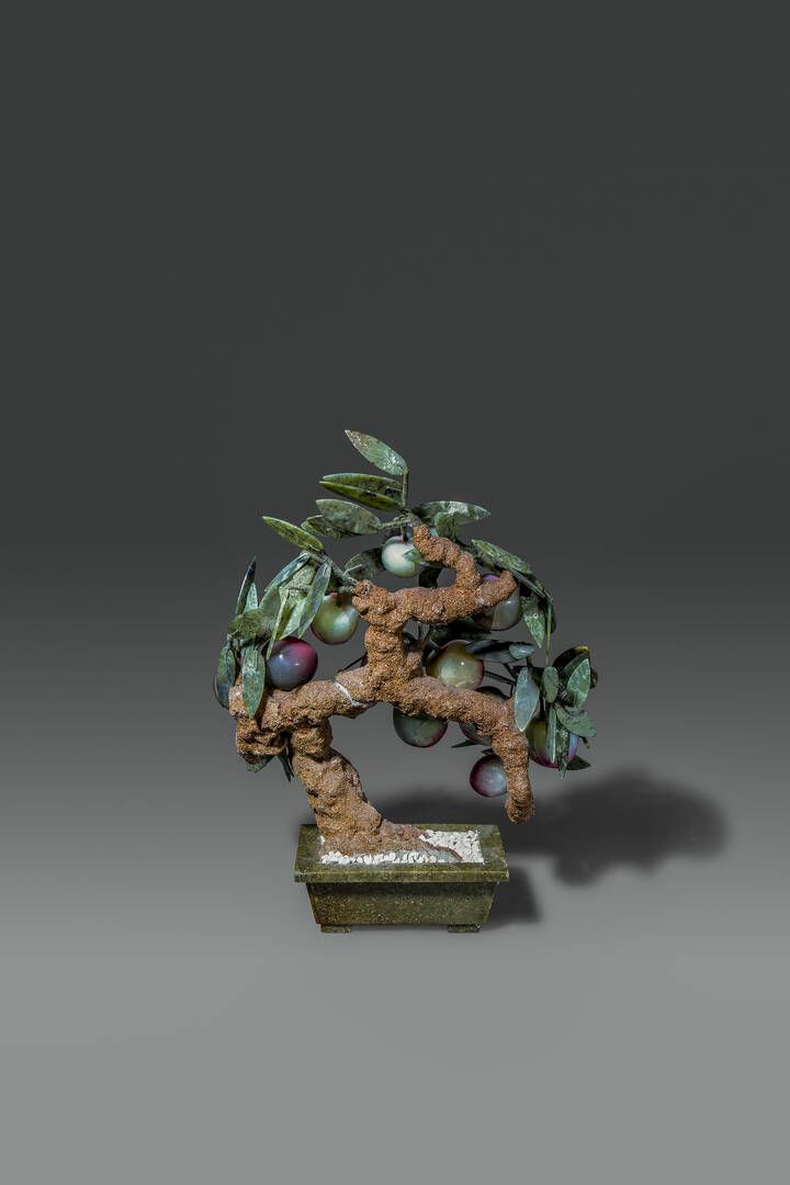 Giardiniera in marmo con bonsai in pietre dure Cina Repubblica XX sec cm 44x3 [..]