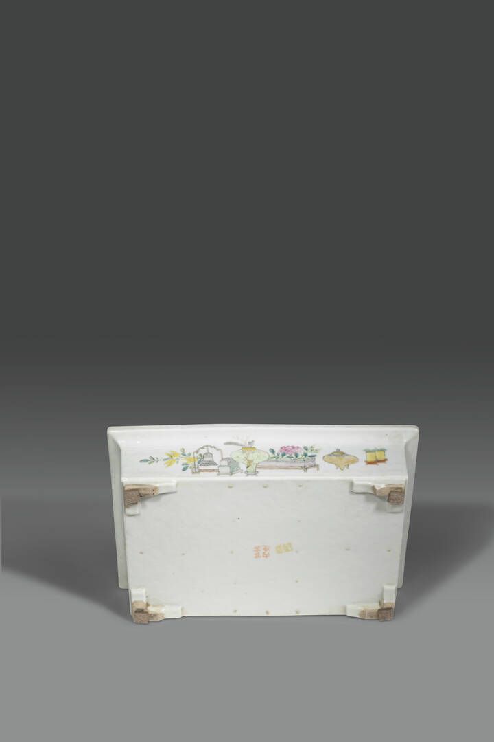 Giardiniera in porcellana Famiglia Rosa con decori policromi personaggio e iscrizioni [..]