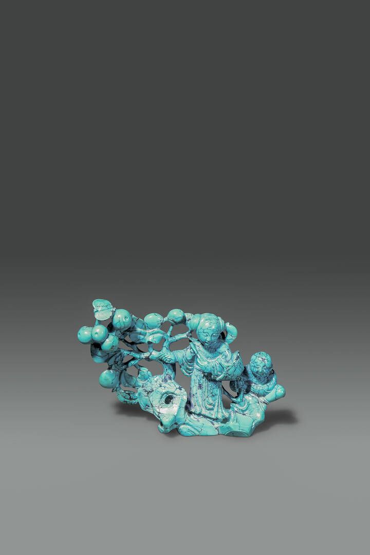 Gruppo in turchese con figure e albero di melograno Cina Repubblica XX sec H cm 10x15