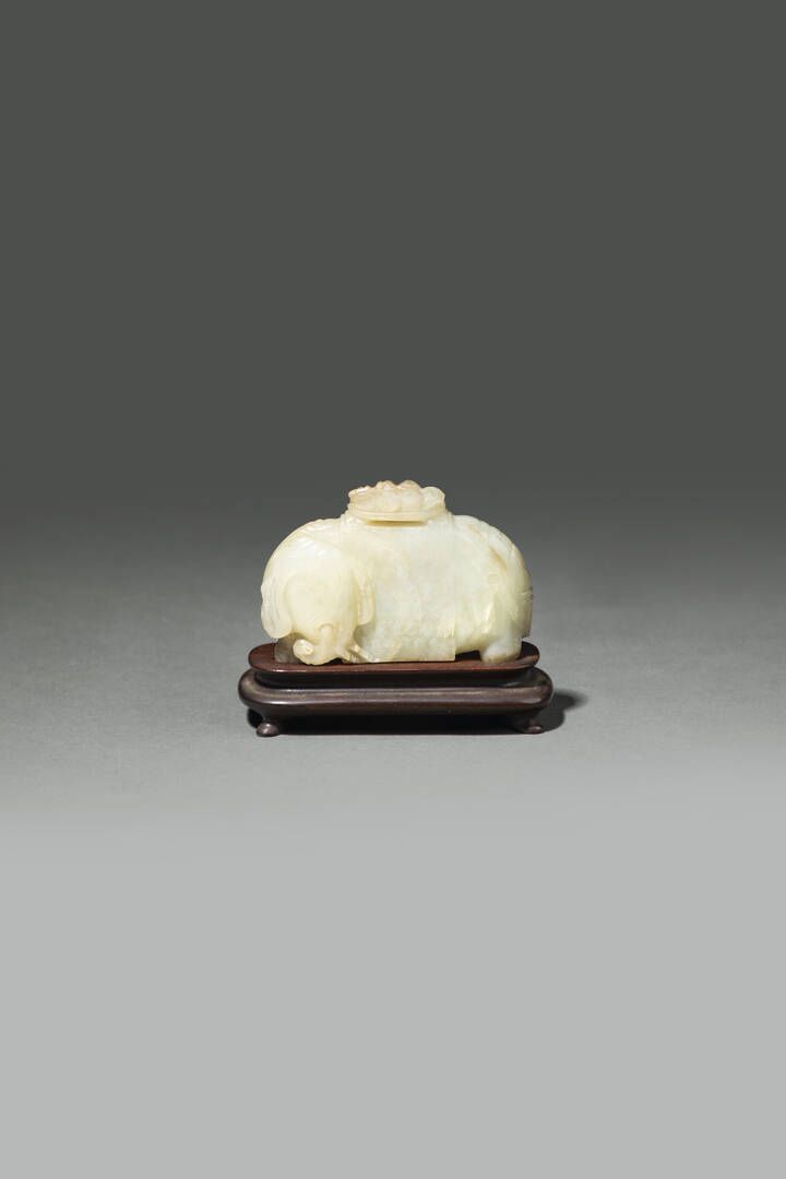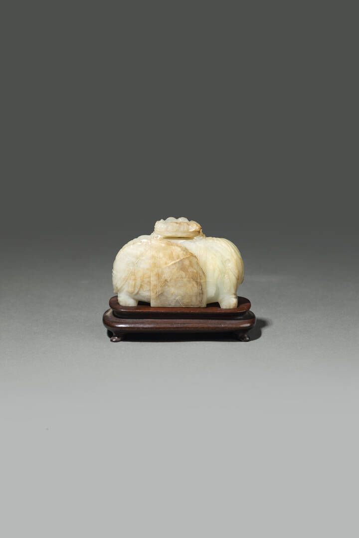 Intaglio in giada bianca con russet raffigurante elefante sulla schiena una coperta drappeggiata CIna dinastia Ming XVII sec H cm 6x9