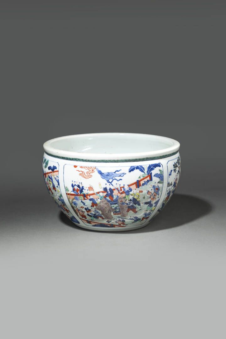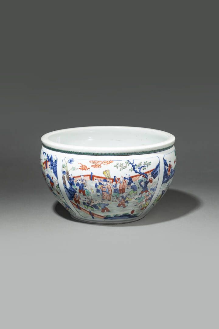 Piccola vasca in porcellana Famiglia Verde dipinta con scene di personaggi in festa [..]