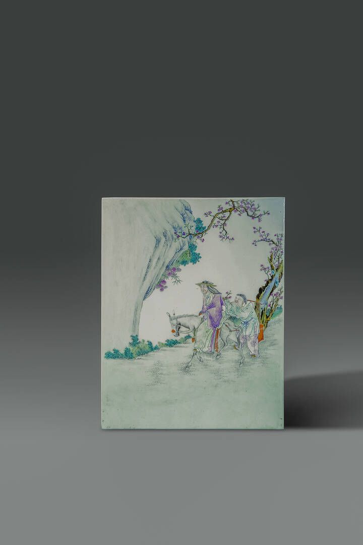 Placca in porcellana Famiglia Rosa dipinta con personaggi e cavallo Cina Repubblica [..]