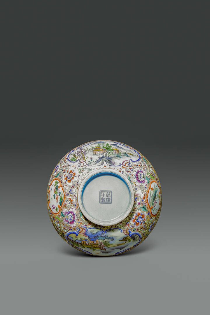Portavivande in porcellana Famiglia Rosa decorata con fiori e paesaggi entro riserve [..]