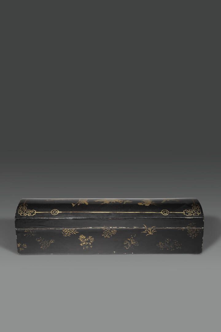 Scatola in legno laccato dipinta in oro zecchino Cina Repubblica XX sec cm 18x65x20