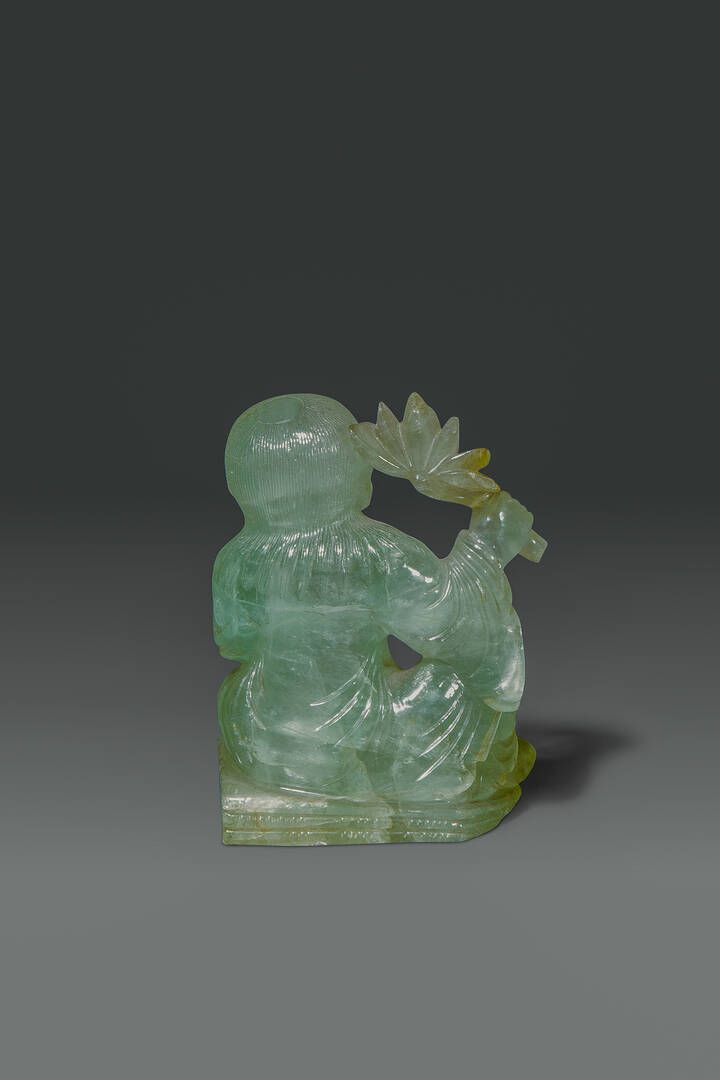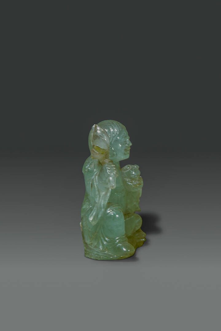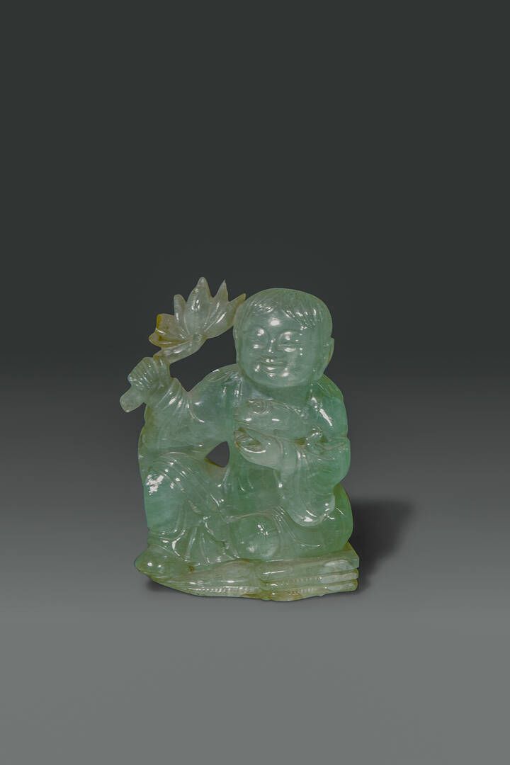 Scultura di ragazzo seduto in giada Cina dinastia Qing XIX sec H cm 11x8