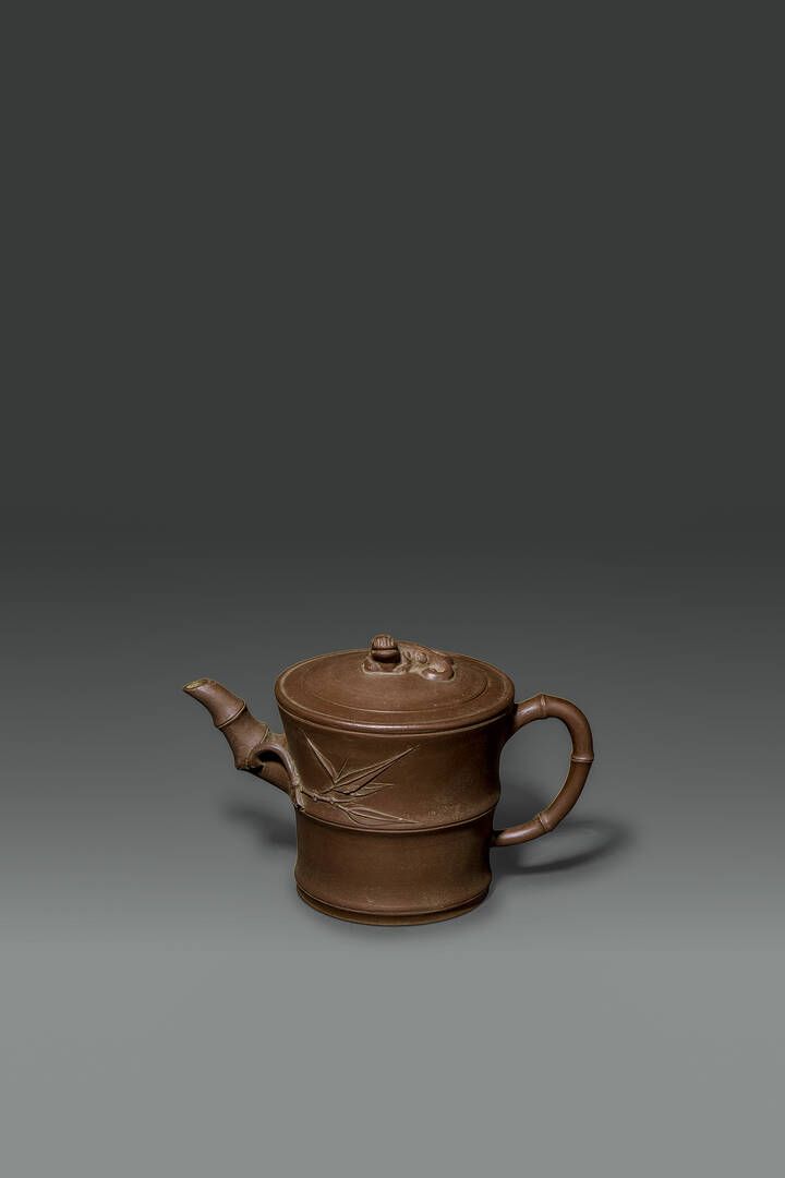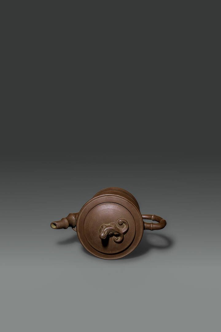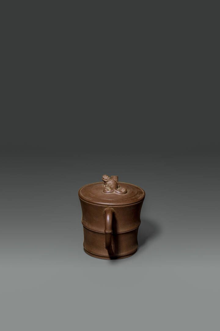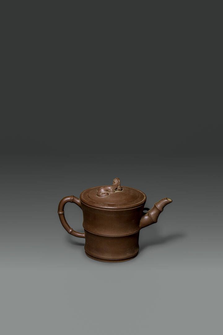 Teiera in terracotta a forma di bamboo Cina XX sec H cm 12 Diam cm 19